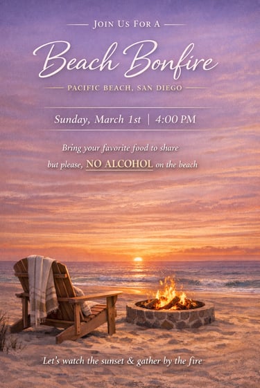 For this invitation, the goal was a more mature and refined aesthetic. The prompt was made to ensure the final image felt sophisticated and welcoming for an evening event, balancing the warmth of the fire with a clean layout.