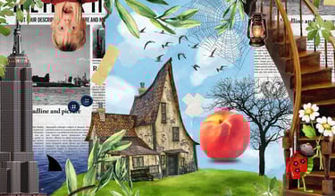A creative reinterpretation of the beloved James and the Giant Peach using watercolor art style.