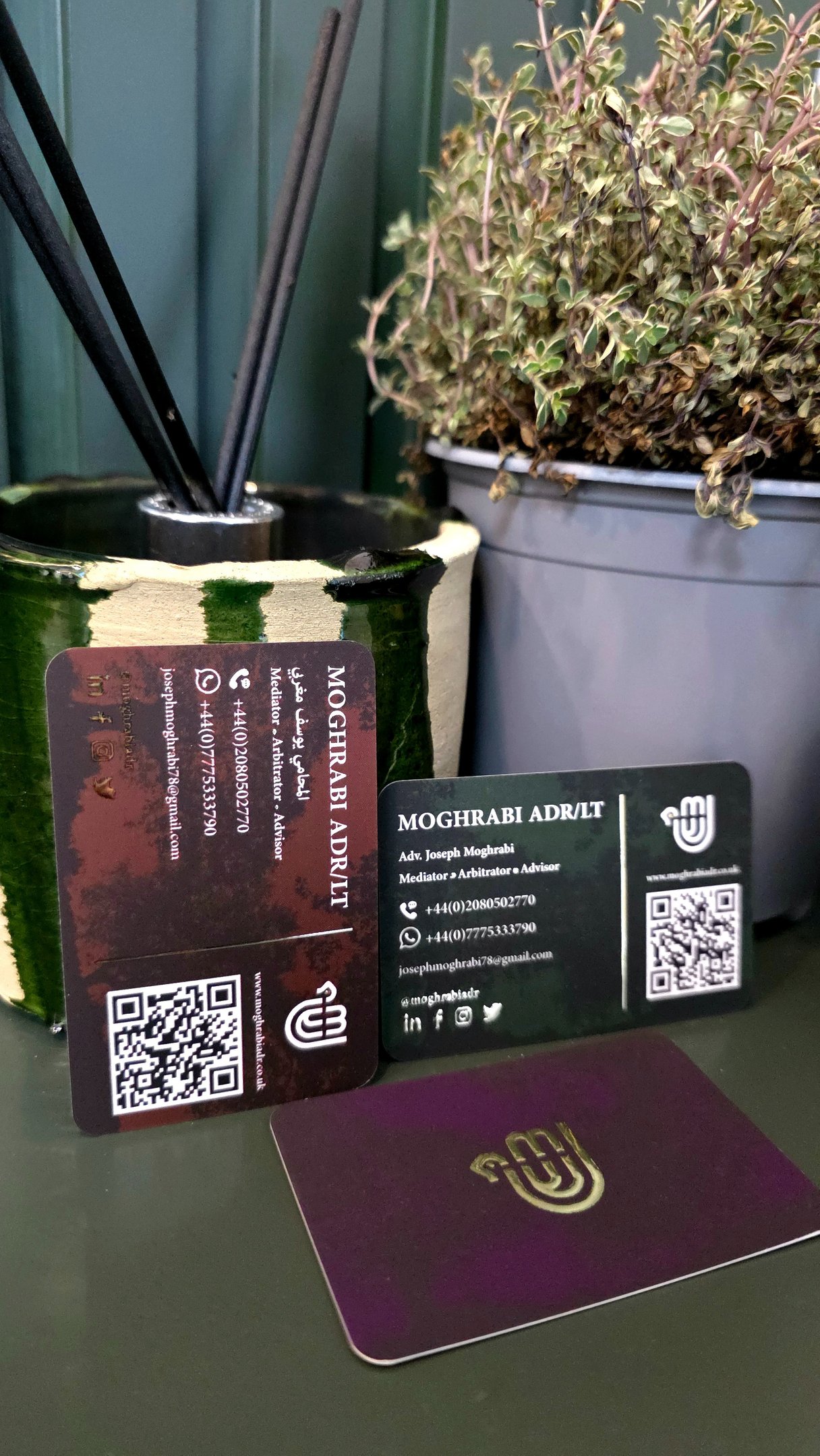The design process was a real collaboration. We went through a few rounds of revisions to find the right colors, but the coolest part was working on his name. He wanted his name to reflect his background by showing it in English, Arabic, and Hebrew. Since it was just his name in these languages, I focused on making the scripts look balanced and sharp together without overcomplicating the rest of the card.